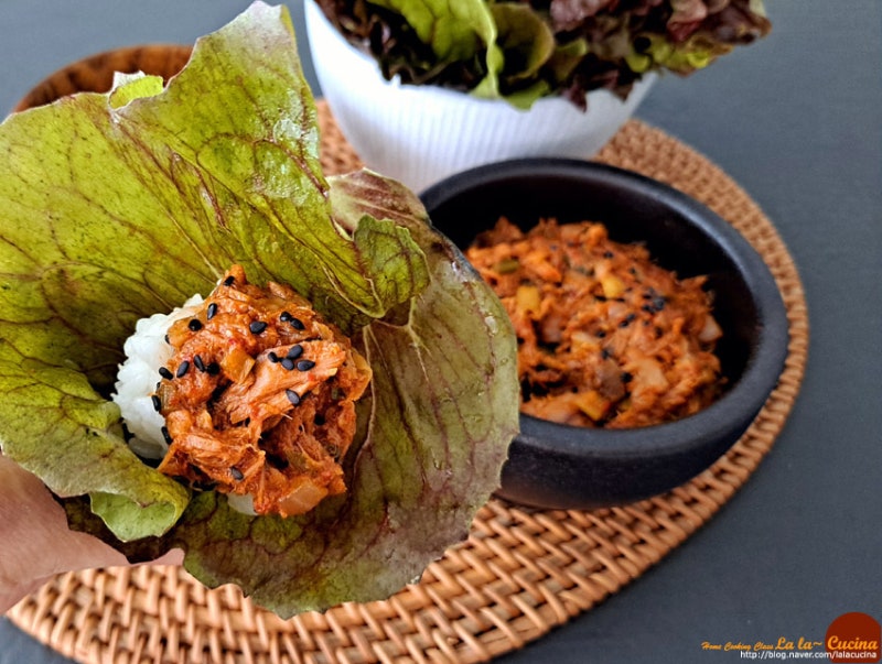 더워요, 더워요. 이제는 어쩔 수 없이 아침에 창문을 열게 되는데… 불과 2주 전만 해도 수면양말을 신고 전기매트를 깔고 잤습니다. ^^;; 아무튼 날이 더워지면 식욕도 생기고 싱싱한 쌈채소와 함께 쌈밥이 먹고 싶어지네요. 집에 상추를 선물로 준 것 같아서 참치캔을 따서 참치쌈장을 만들었어요. 참치를 넣으면 고기를 따로 준비할 필요 없이 쌈장만으로 더욱 맛있게 먹을 수 있습니다. ^^ 참치쌈장