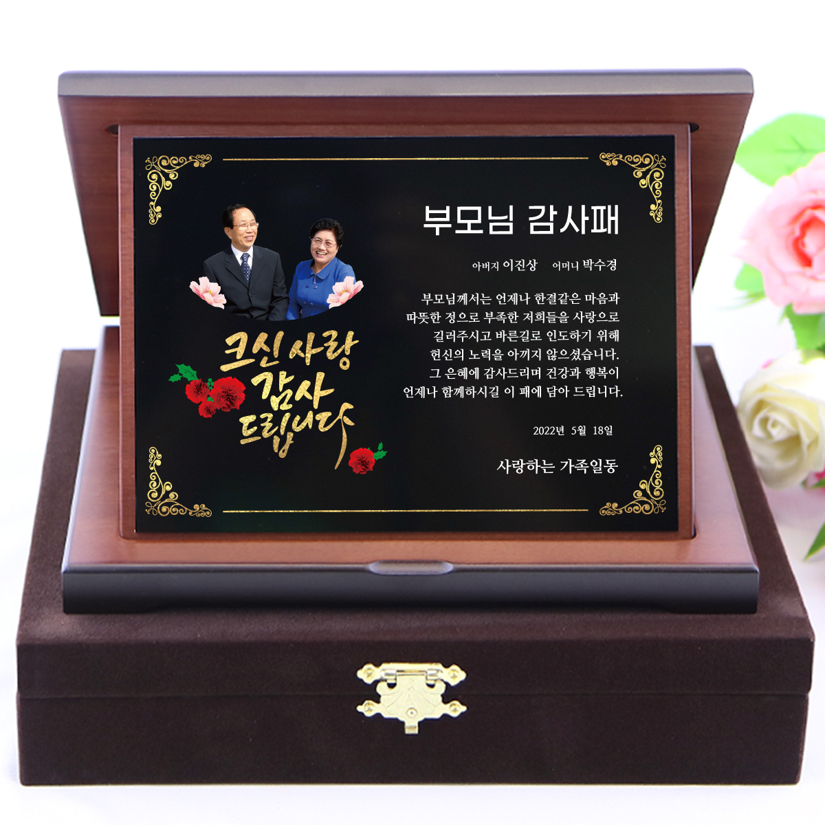 부모님께 감사의 마음을 전하는 패를 들고 예쁜 곳에서 사진도 찍어보세요! 결코 잊지 못할 의미있는 선물이 될 것이라 확신합니다.